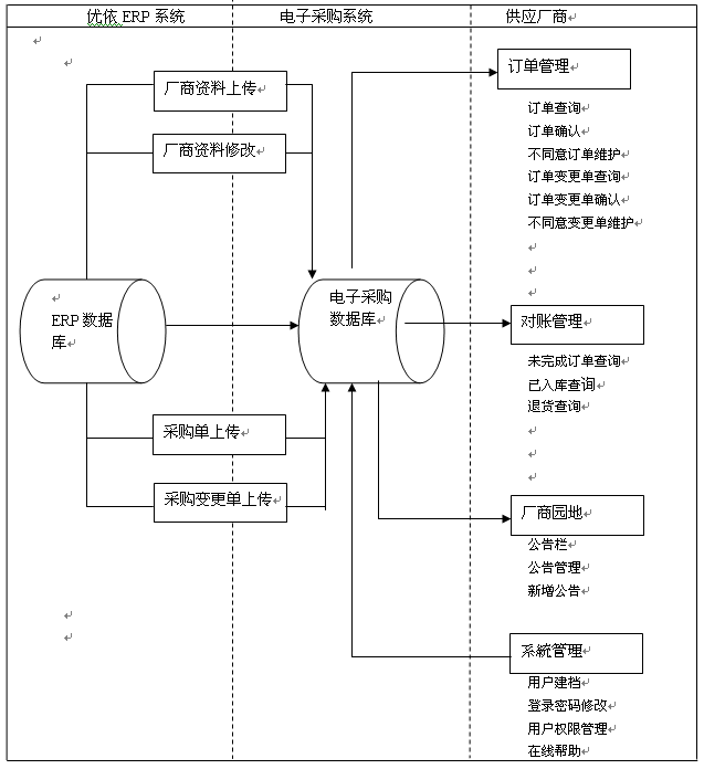 電子采購系統(tǒng)與優(yōu)依ERP系統(tǒng)緊密集成,使用電子采購系統(tǒng)后,供應(yīng)商可以訪問電子采購網(wǎng)站直接查詢ERP中的采購單,并可以在網(wǎng)絡(luò)上確認及往來對賬